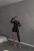 Fühlen Sie sich besonders in unserem eleganten Mini-Kleid "IZZY", das klassische Eleganz mit einem modernen Twist verbindet. Ideal für abendliche Ausflüge, ist dieses Kleid aus hochwertiger Lycra gefertigt, die sich perfekt an die Silhouette anpasst und ihre Formen mit einem subtilen, aber entschlossenen Charme betont.