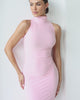 NADIA Różowa Sukienka Midi ze Stójką i Odkrytymi Ramionami